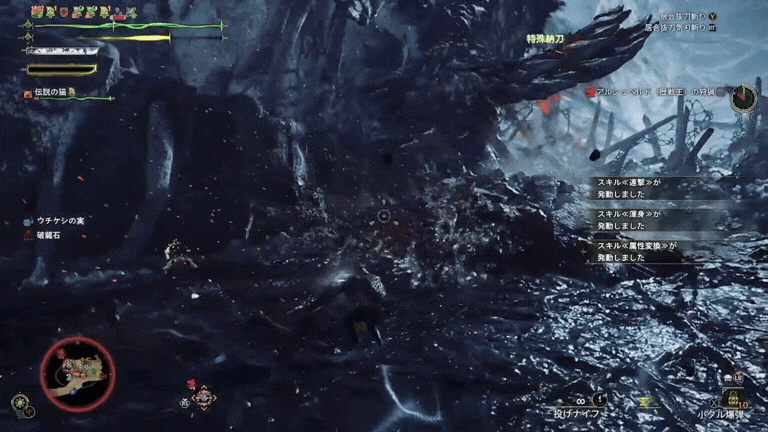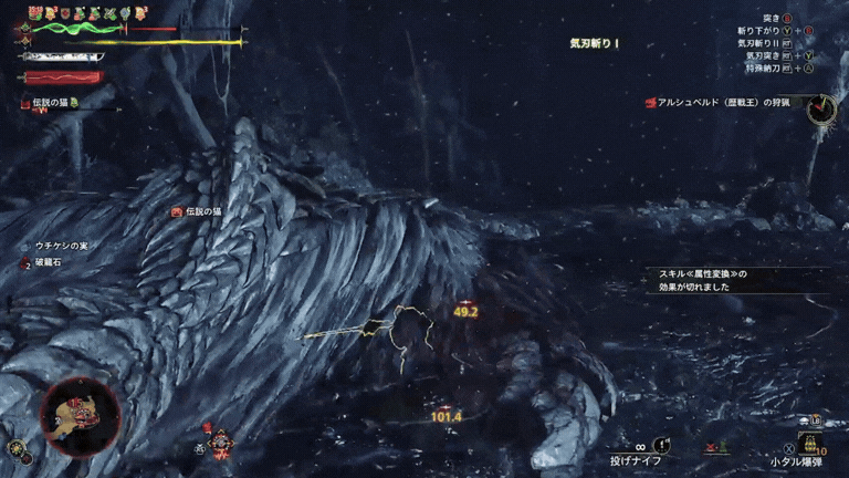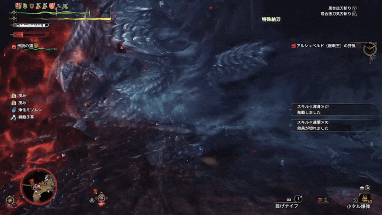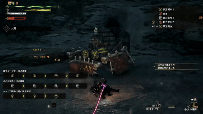 | 【アクション】 | 【小タル爆弾を設置】→【気刃斬りⅠ】→【特殊納刀】→【居合抜刀気刃斬り】 |