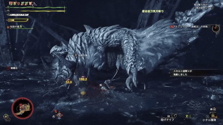| 【アクション】 | 【見切り斬り】→【特殊納刀】→攻撃に合わせて【居合抜刀気刃斬り】 |